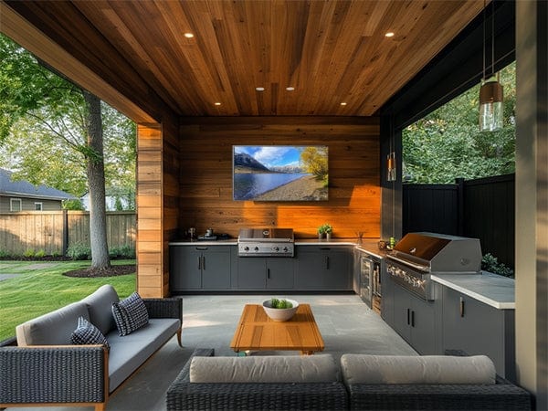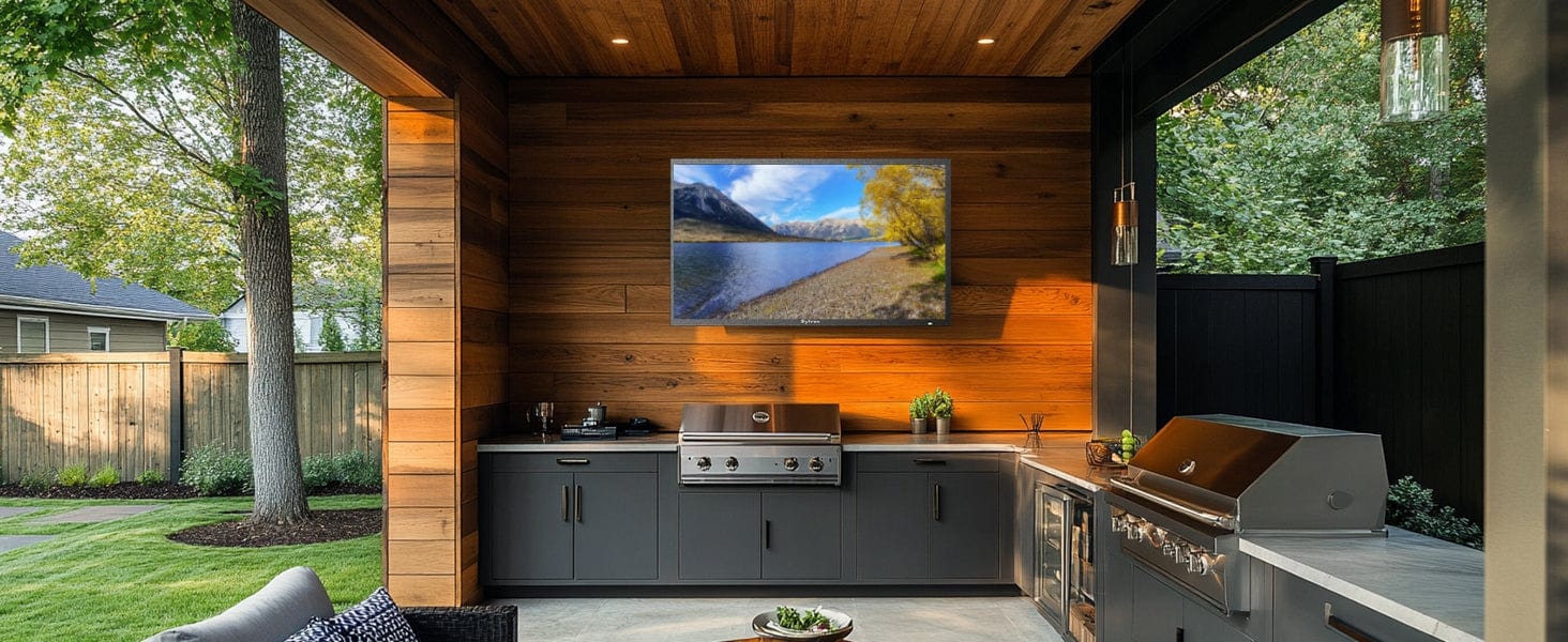 Pool SE 32 Zoll Outdoor Fernseher – mit Deckenhalterung & S3 Outdoor Soundbar