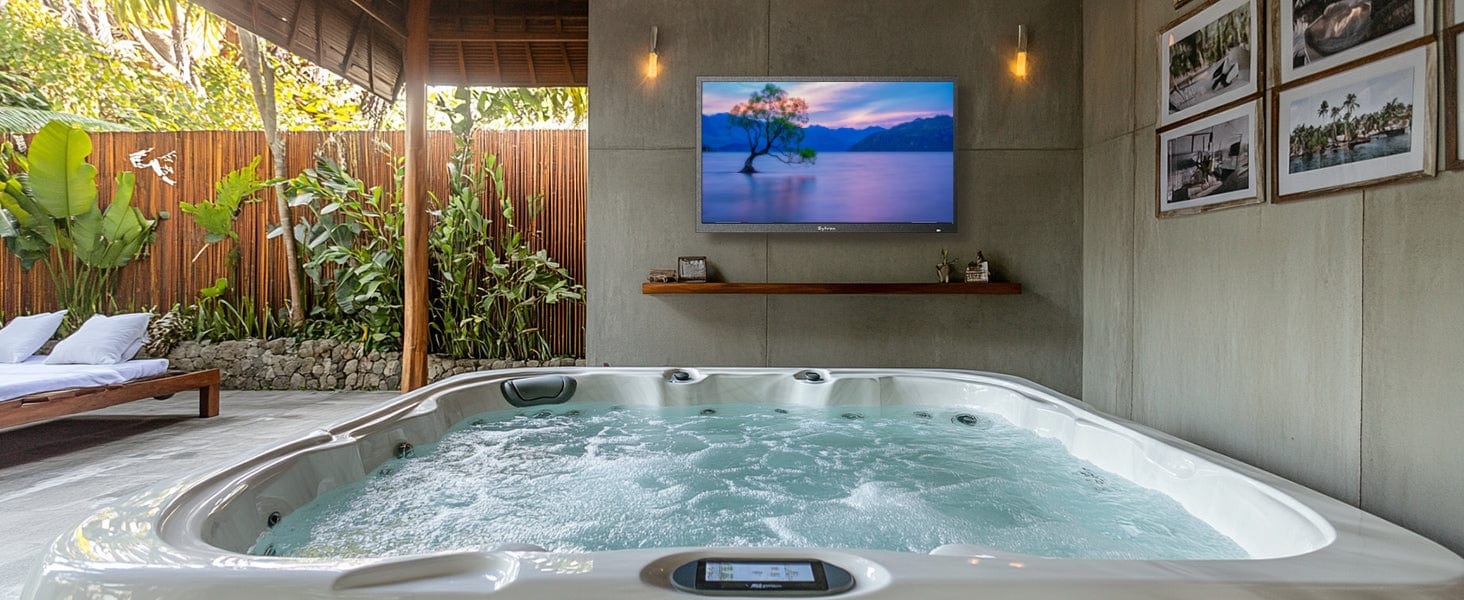 Pool SE 32 Zoll Outdoor Fernseher – mit Motorisierte Deckenhalterung & S3 Outdoor Soundbar