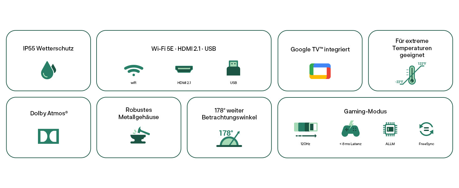 55 Zoll Gaming Outdoor TV (120 Hz) Wetterfest 4K Smart TV - Gaming Serie