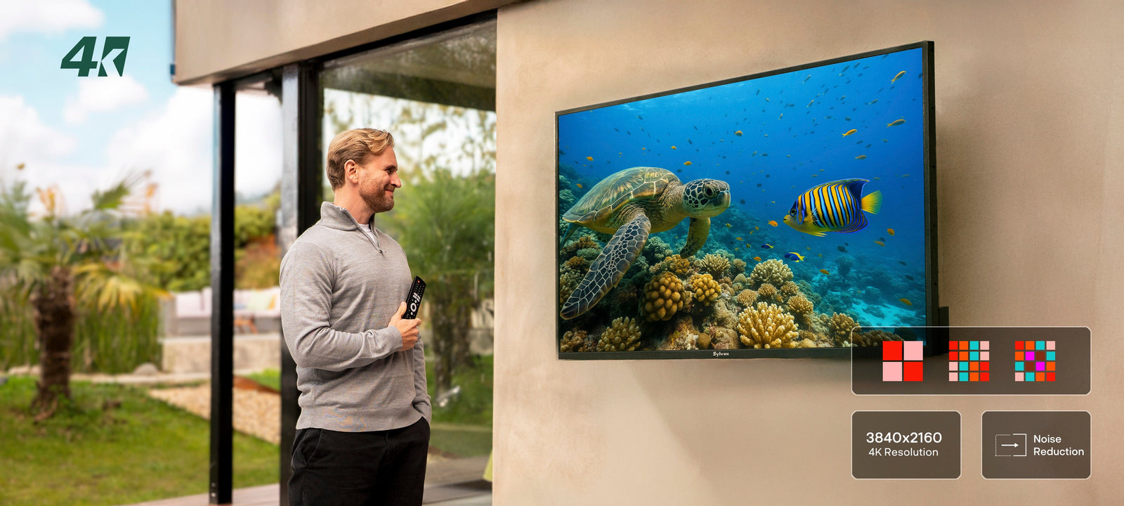 Cinema 75 Zoll Outdoor Fernseher – mit Wandhalterung & S3 Outdoor Soundbar