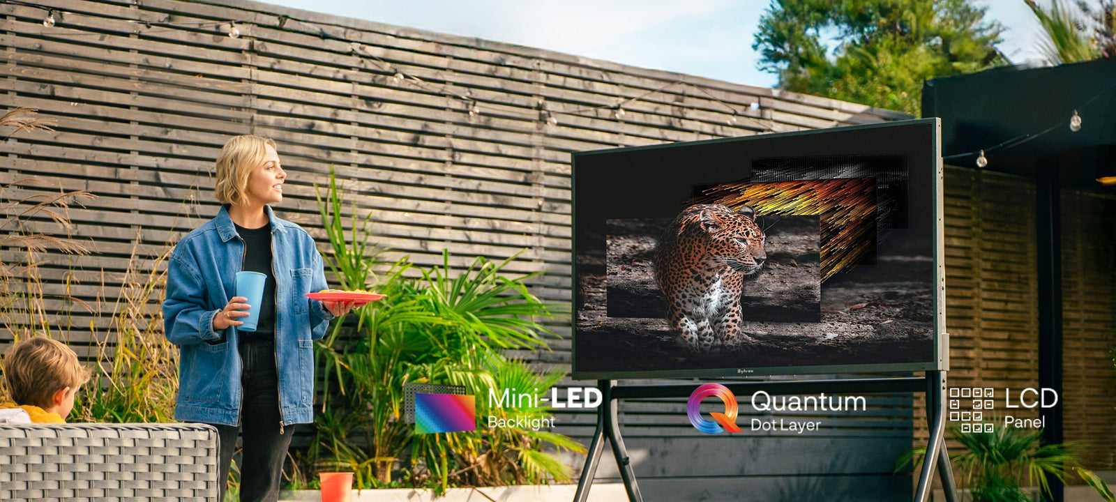 75 Zoll QLED 120 Hz Outdoor Fernseher (Tageslichttauglich) Wetterfest 4K Smart TV - Cinema Serie