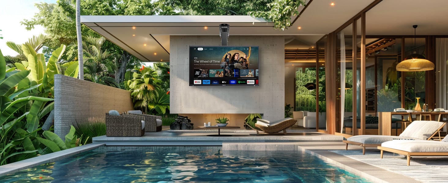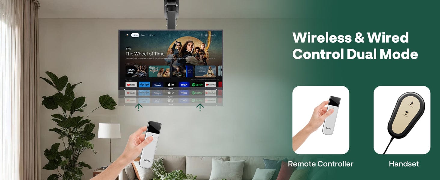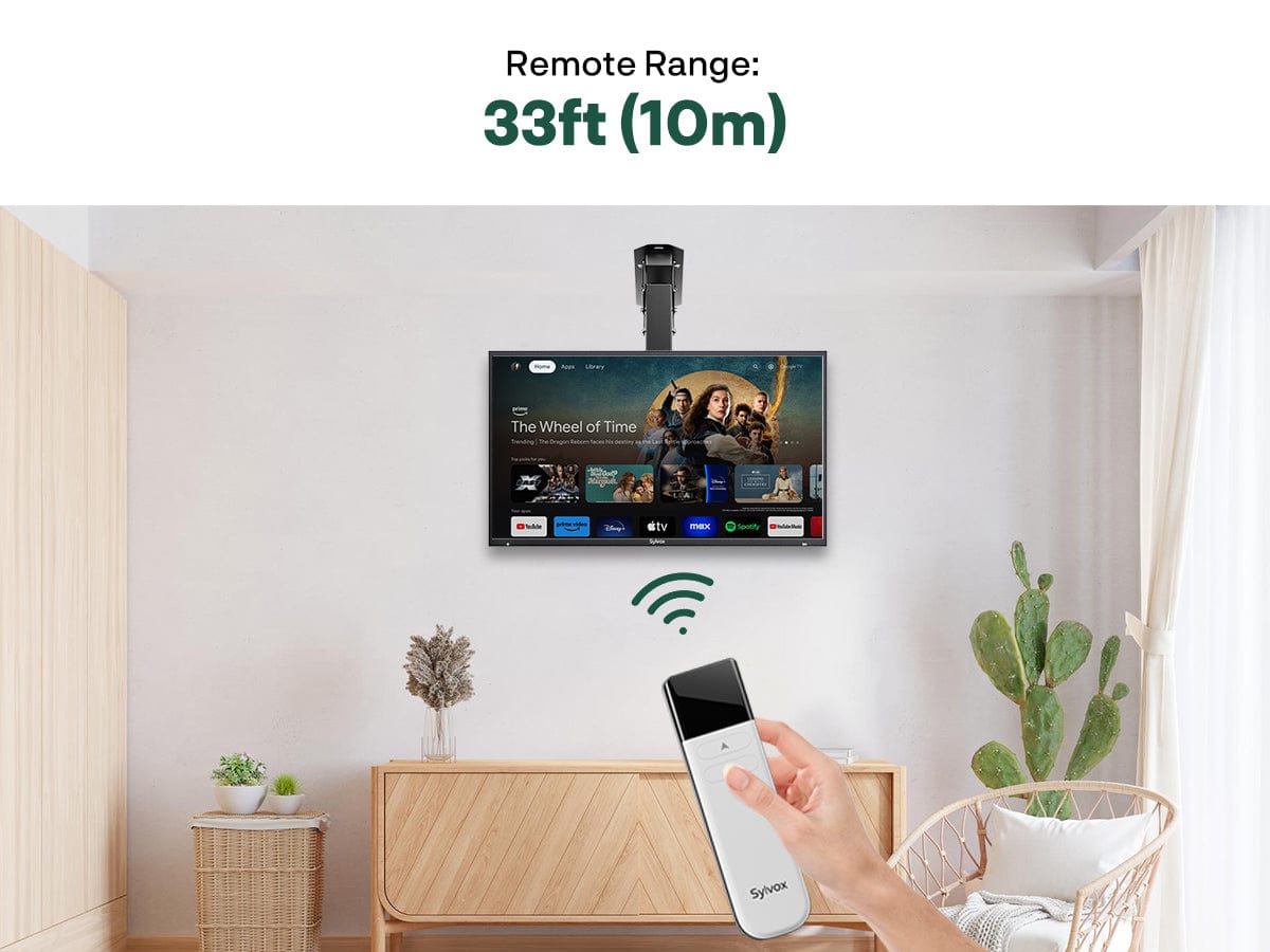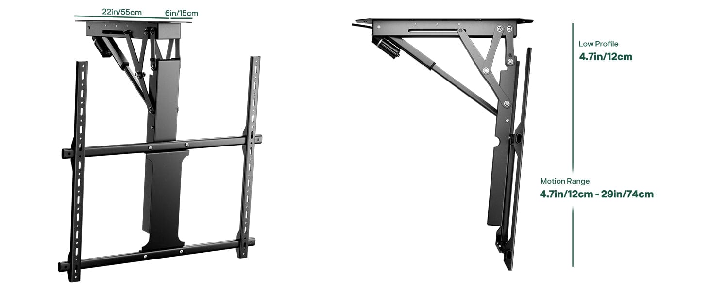 Motorisierte Outdoor TV Deckenhalterung – Wetterfest, Elektrisch Klappbar mit Fernbedienung