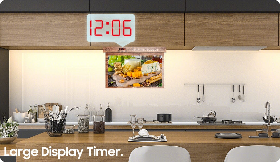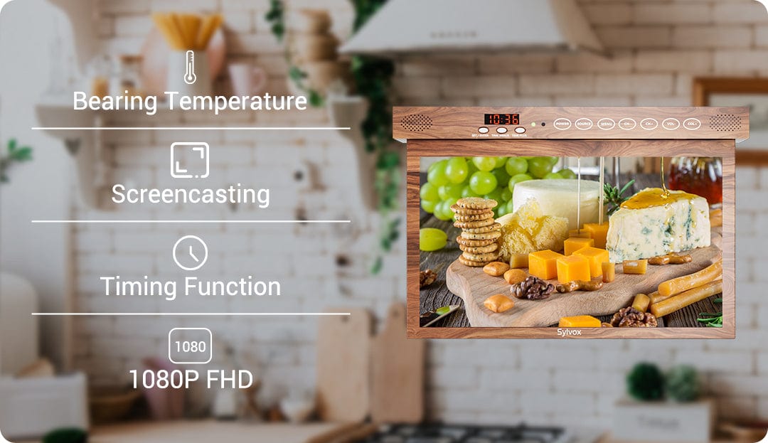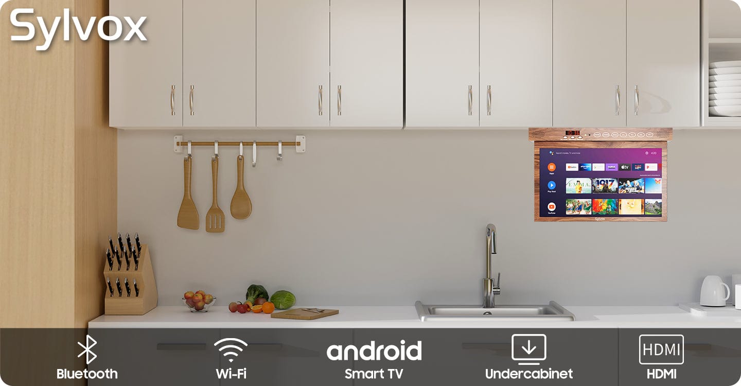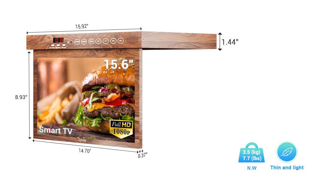 Sylvox 15,6" Küchen-TV Holz-Optik – Unterbaufernseher klappbar für Landhausküchen
