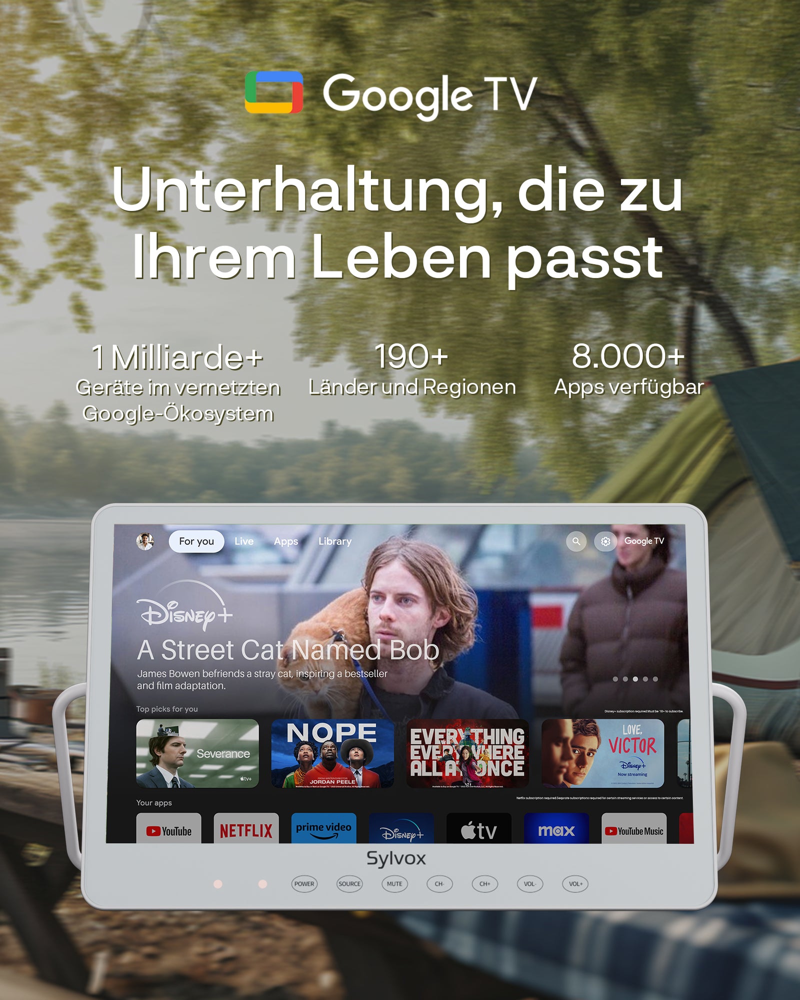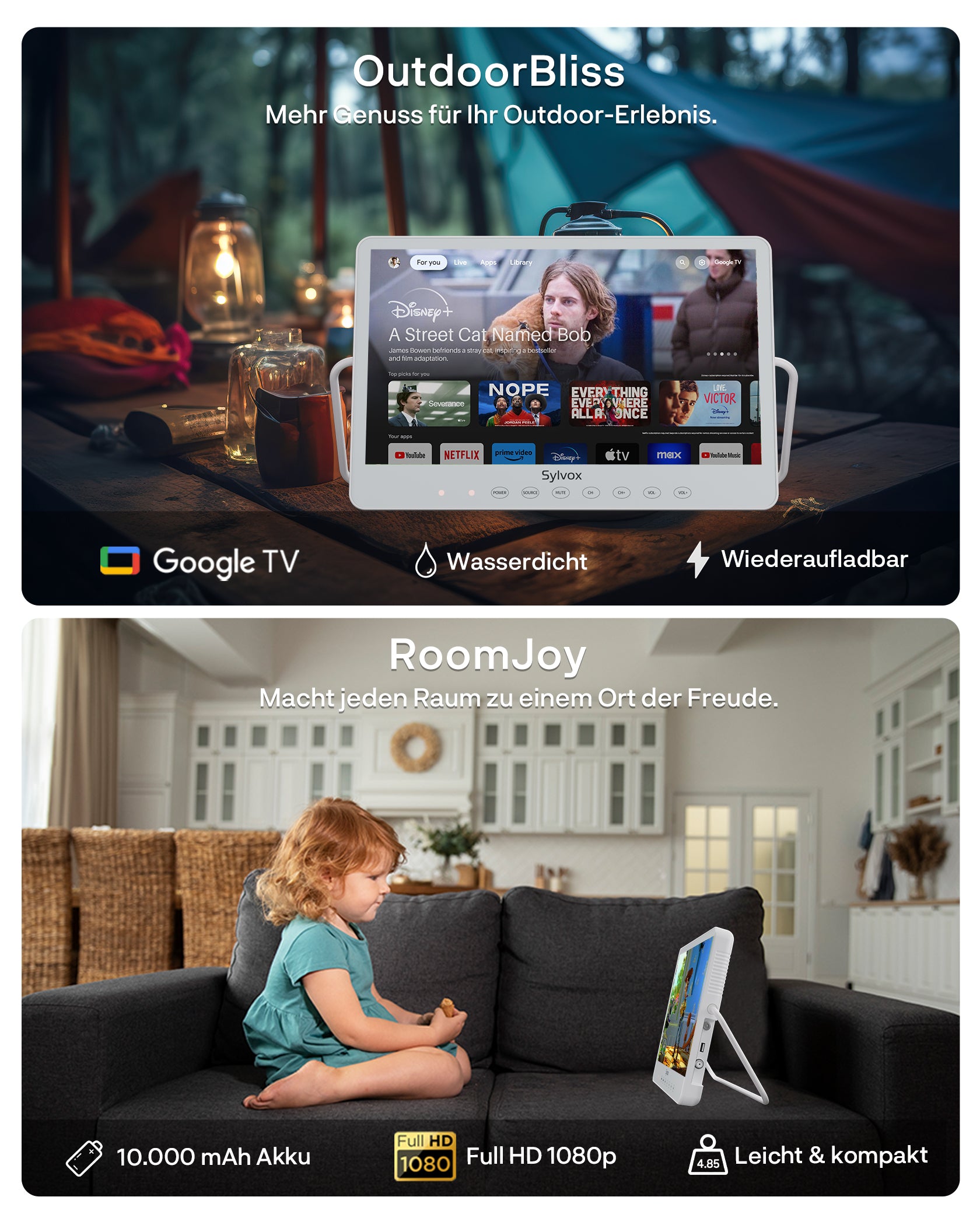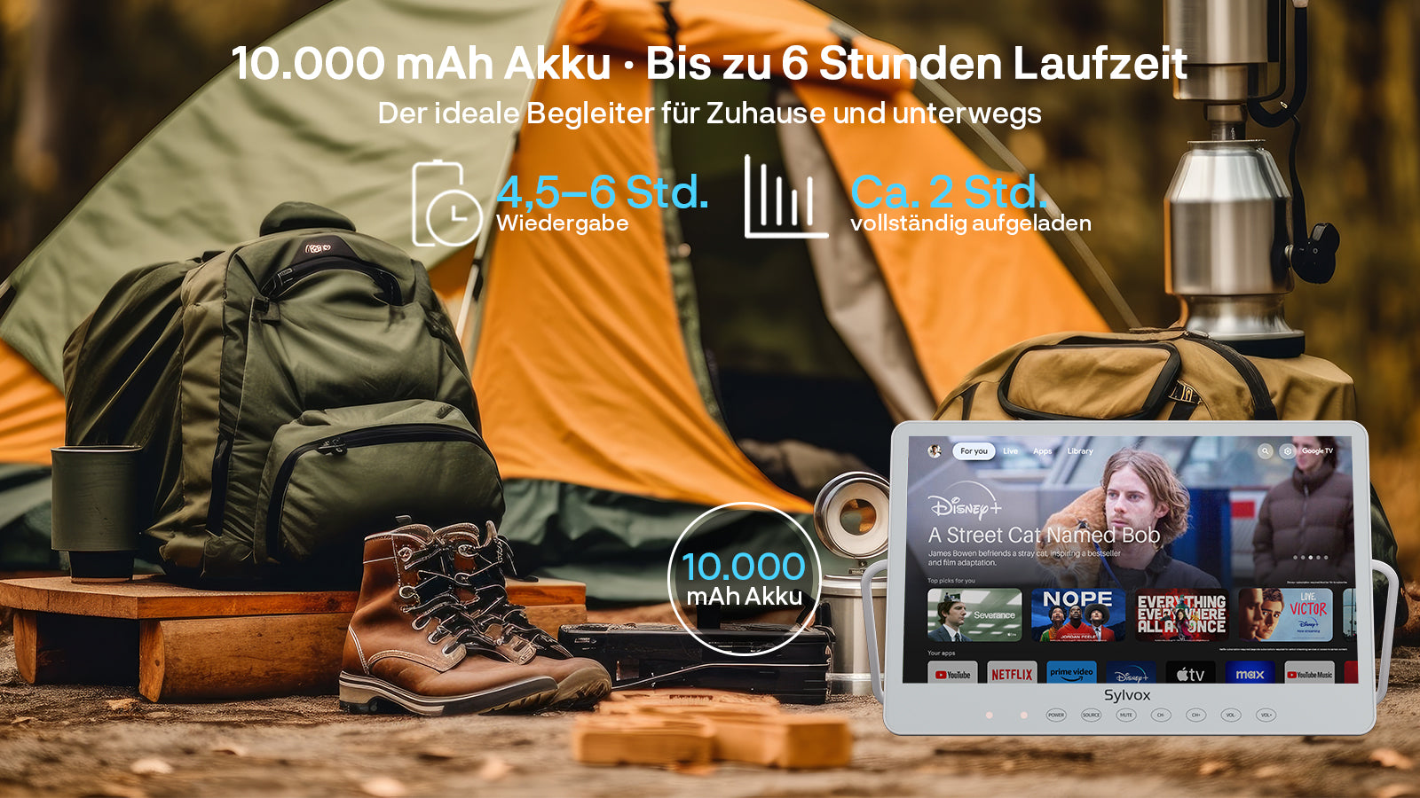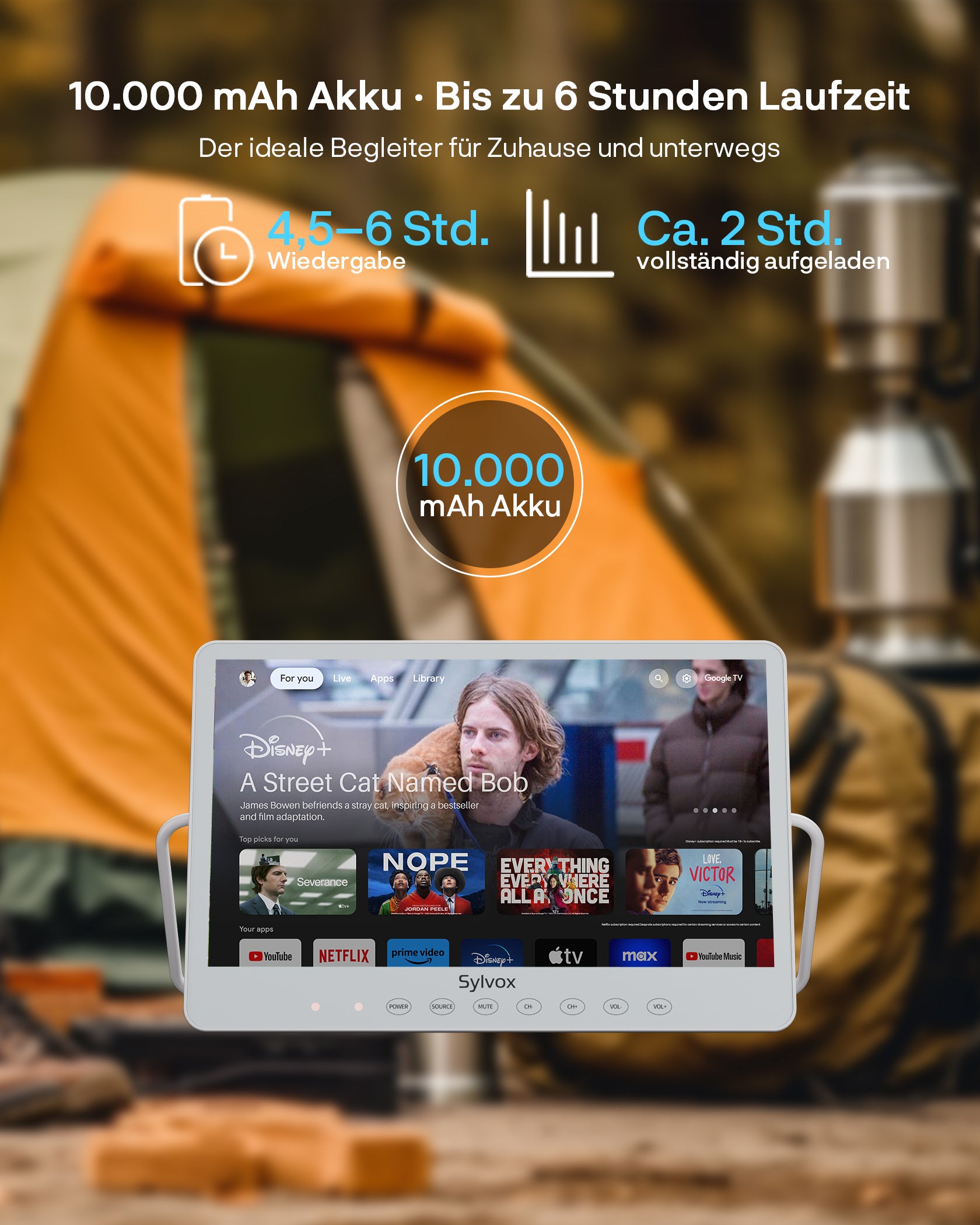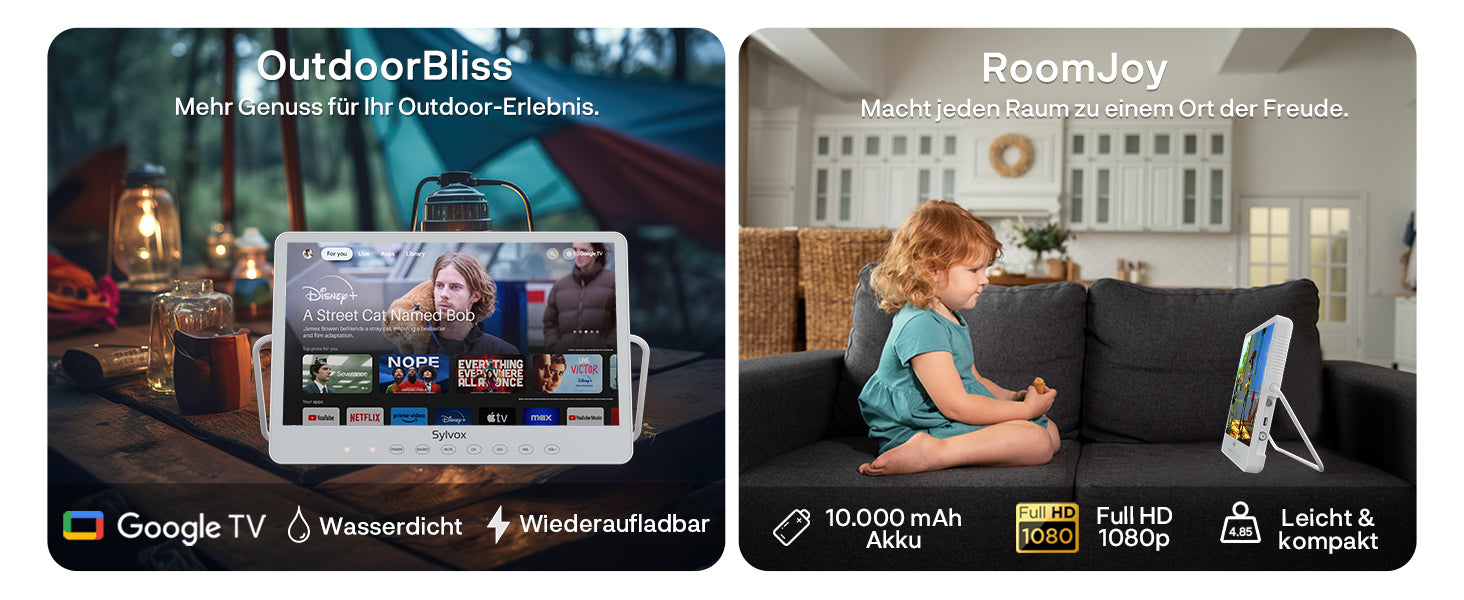 Sylvox 15,6 Zoll Akku TV | Kleiner Tragbarer Fernseher für Camping