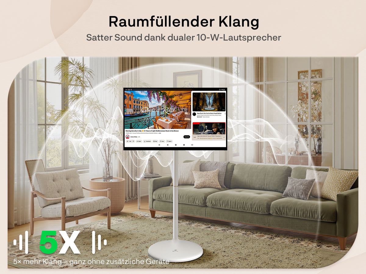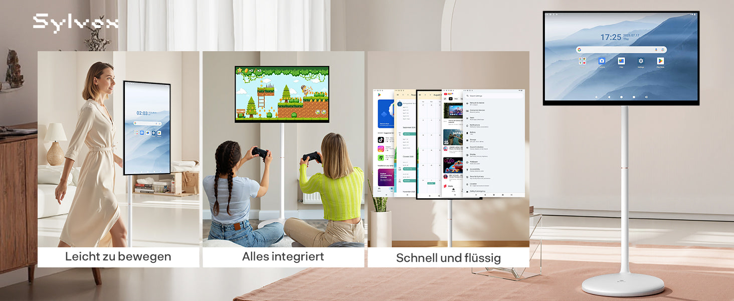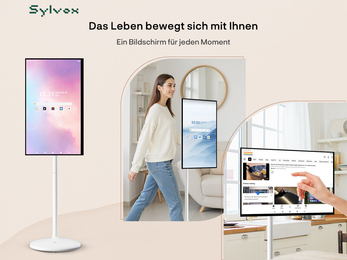 Sylvox 32 Zoll Akku Fernseher | Mobiler Smart TV auf Rollen & Touch