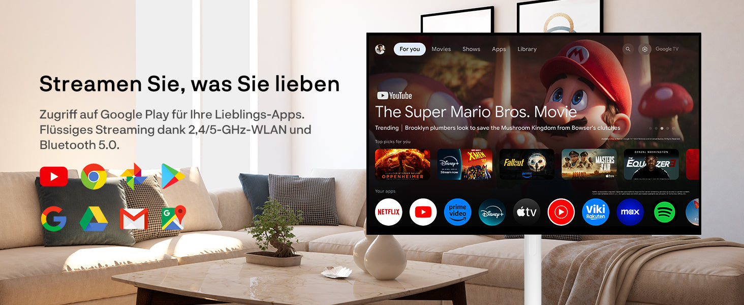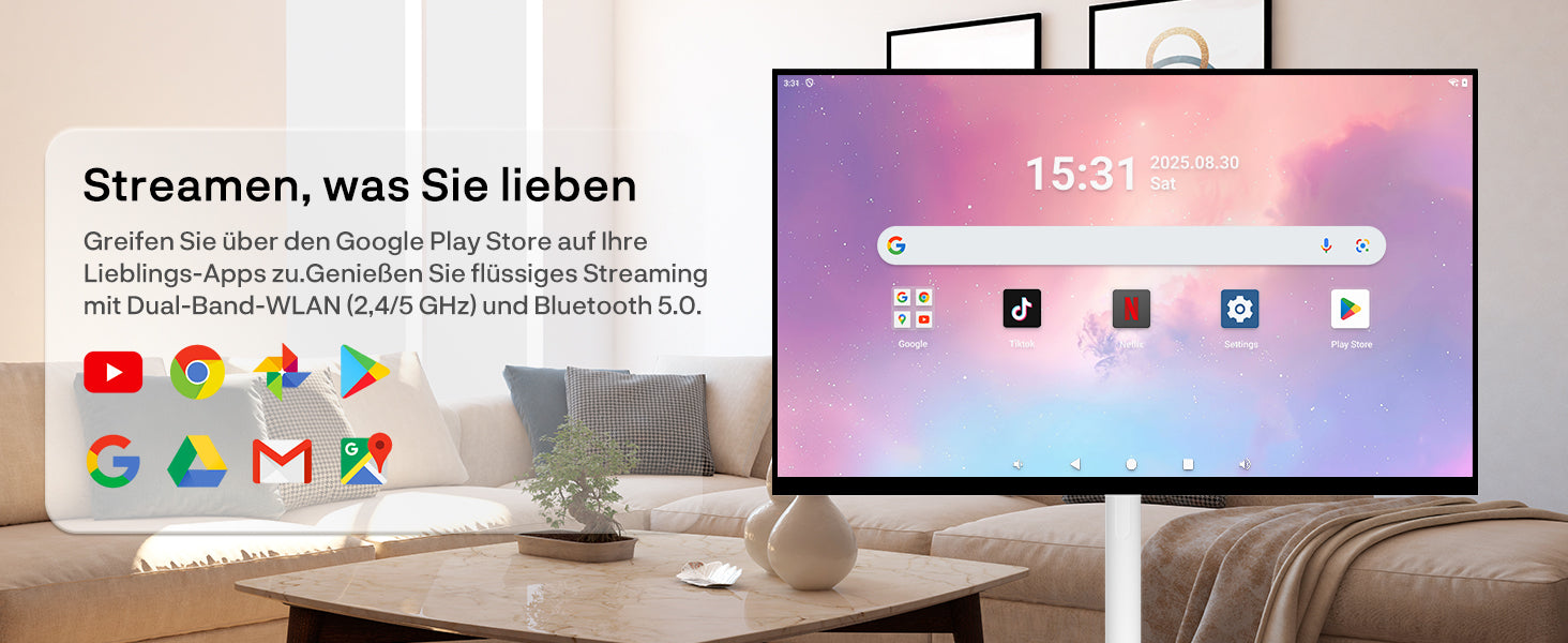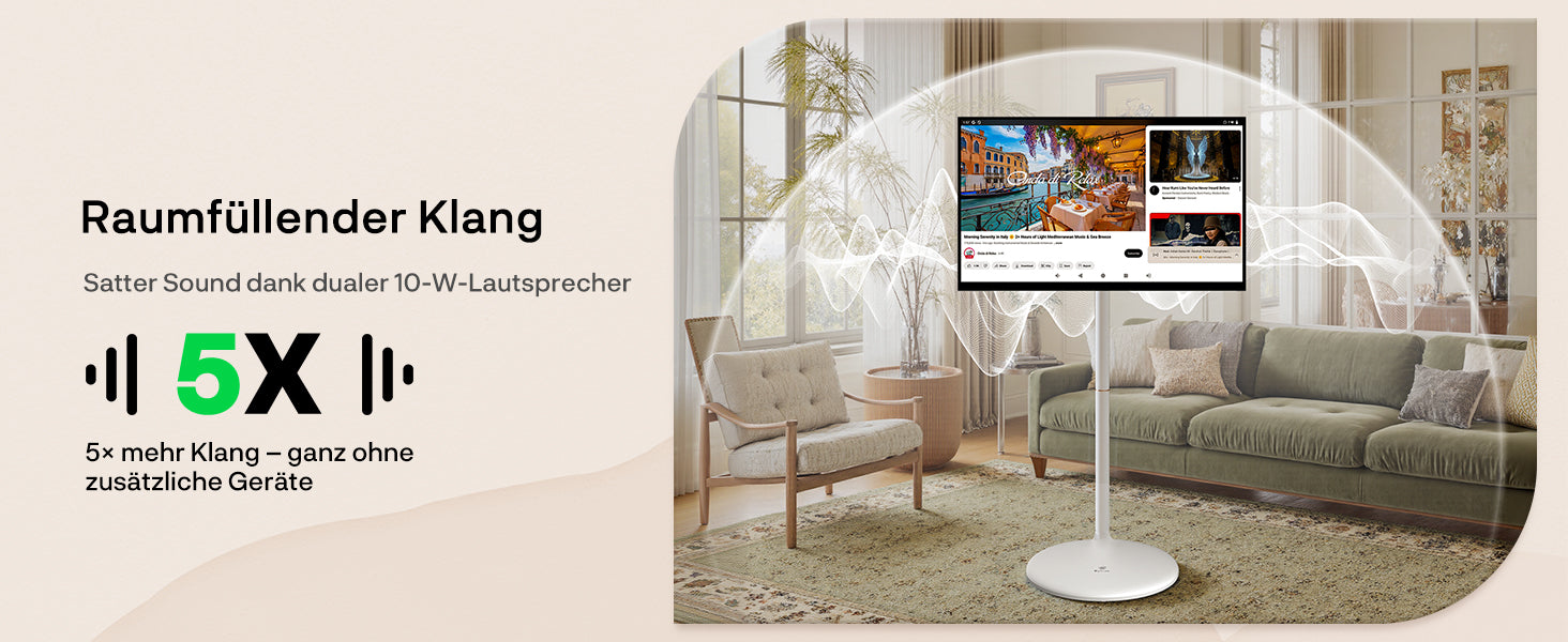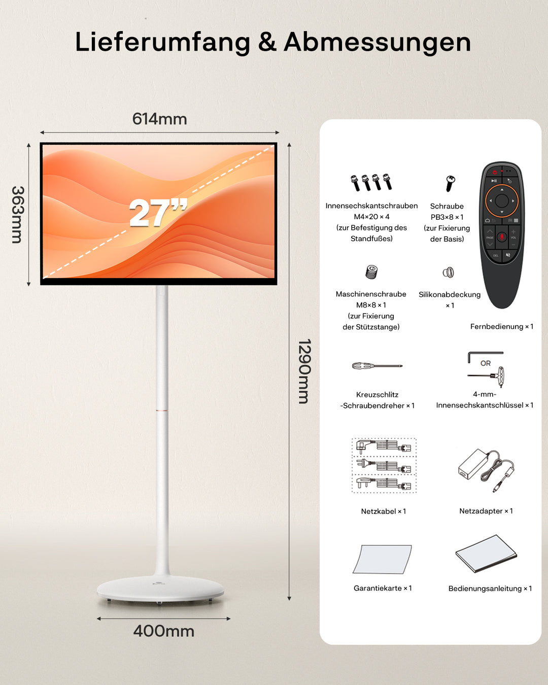 Sylvox 32 Zoll Akku Fernseher | Mobiler Smart TV auf Rollen & Touch
